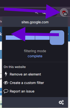 - Click on the webpage to make the ad-blocker dialog box disappear